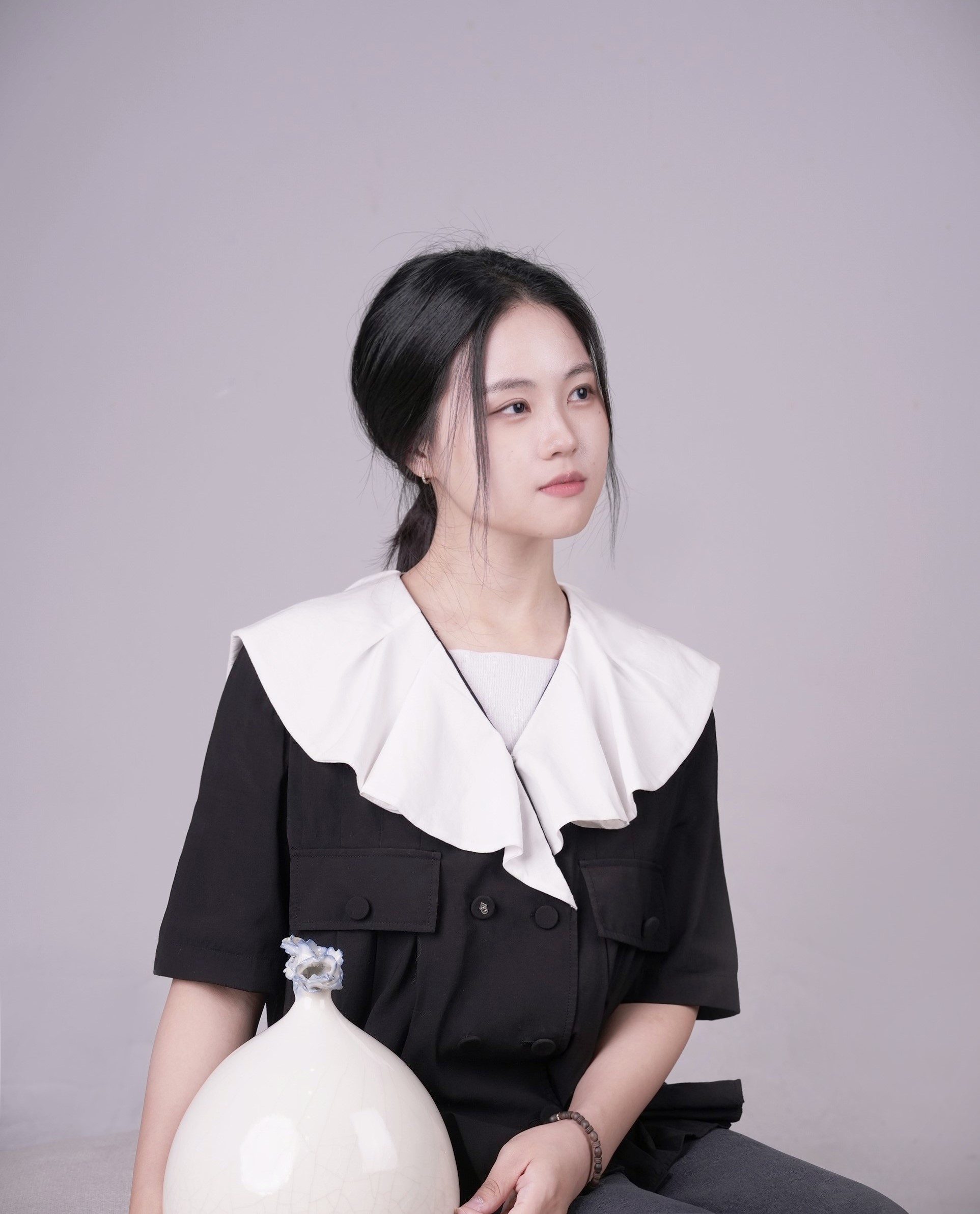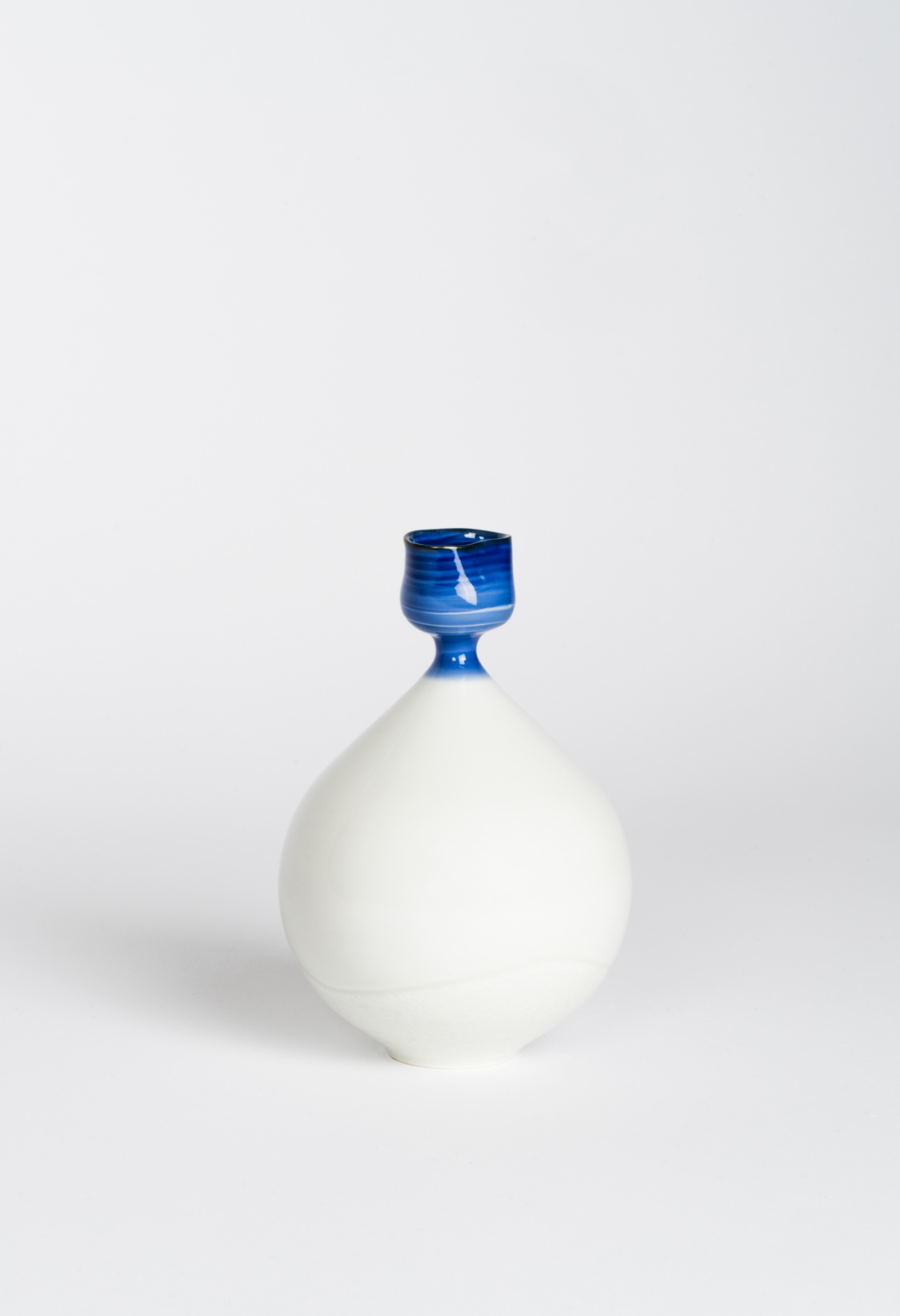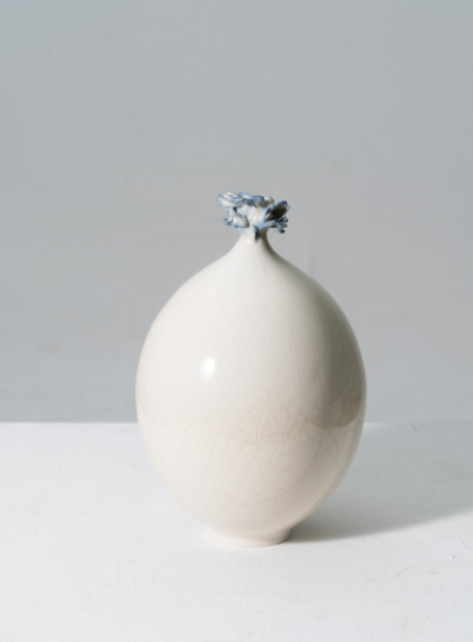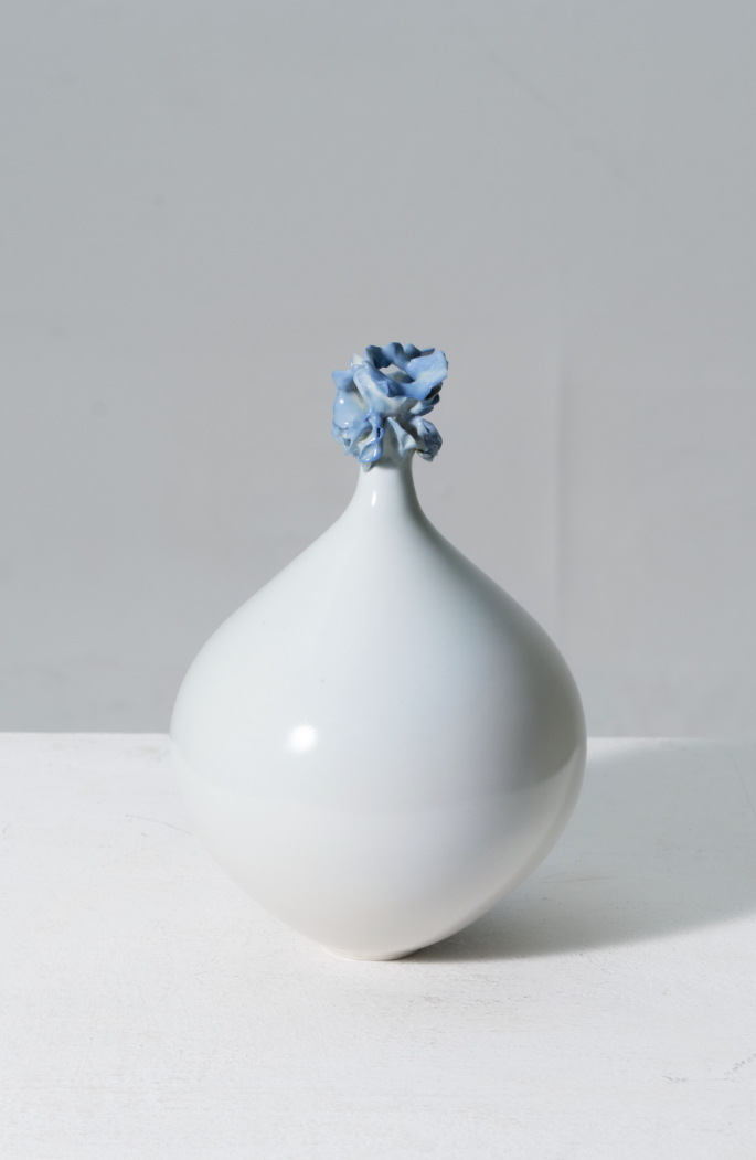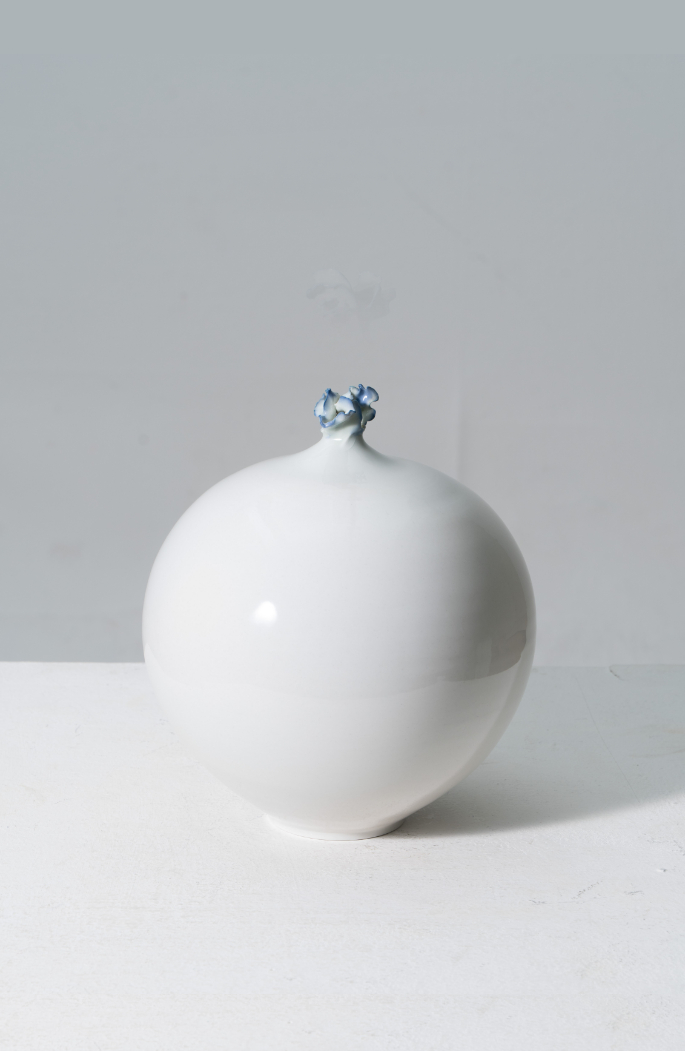 나는 이러한 예측할 수 없는 인연과의 조우를 유기적인 조형, 또는 계산되지 않은 다수의 청화 붓터치로 표현한다. 나의 조형은 물방울이 연상되는 항아리와 물의 파장을 담은 상단부의 조형으로 이뤄진다. 전적으로 계산되지 않은 직관에 의한 작업의 연속 속에서, 나는 하나의 인연을 하나의 도자기에 담아낸다는 마음으로 도자기를 빚는다.